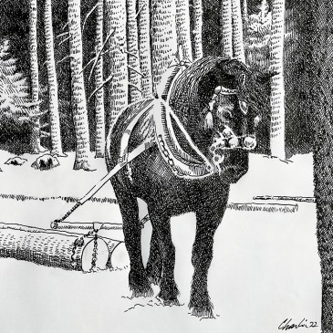 This pen and ink image of a Belgian draft horse was based on a photograph and created as illustration for a story by Denele Campbell in Ozark Hollow. … More ‘The Belgian’